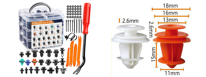 ဤကလစ်များကို Mercedes-Benz ကားများ၏အတွင်းပိုင်းနှင့်အီလက်ထရောနစ် module များပြုပြင်ခြင်းများတွင်ကျယ်ပြန့်စွာအသုံးပြုသည်။ ၎င်းတို့ကိုများသောအားဖြင့်ပေါ့ပါးသောအစိတ်အပိုင်းများနှင့်အစိတ်အပိုင်းများအတွက်စင်တာ console, တံခါးခုံပြားများ,